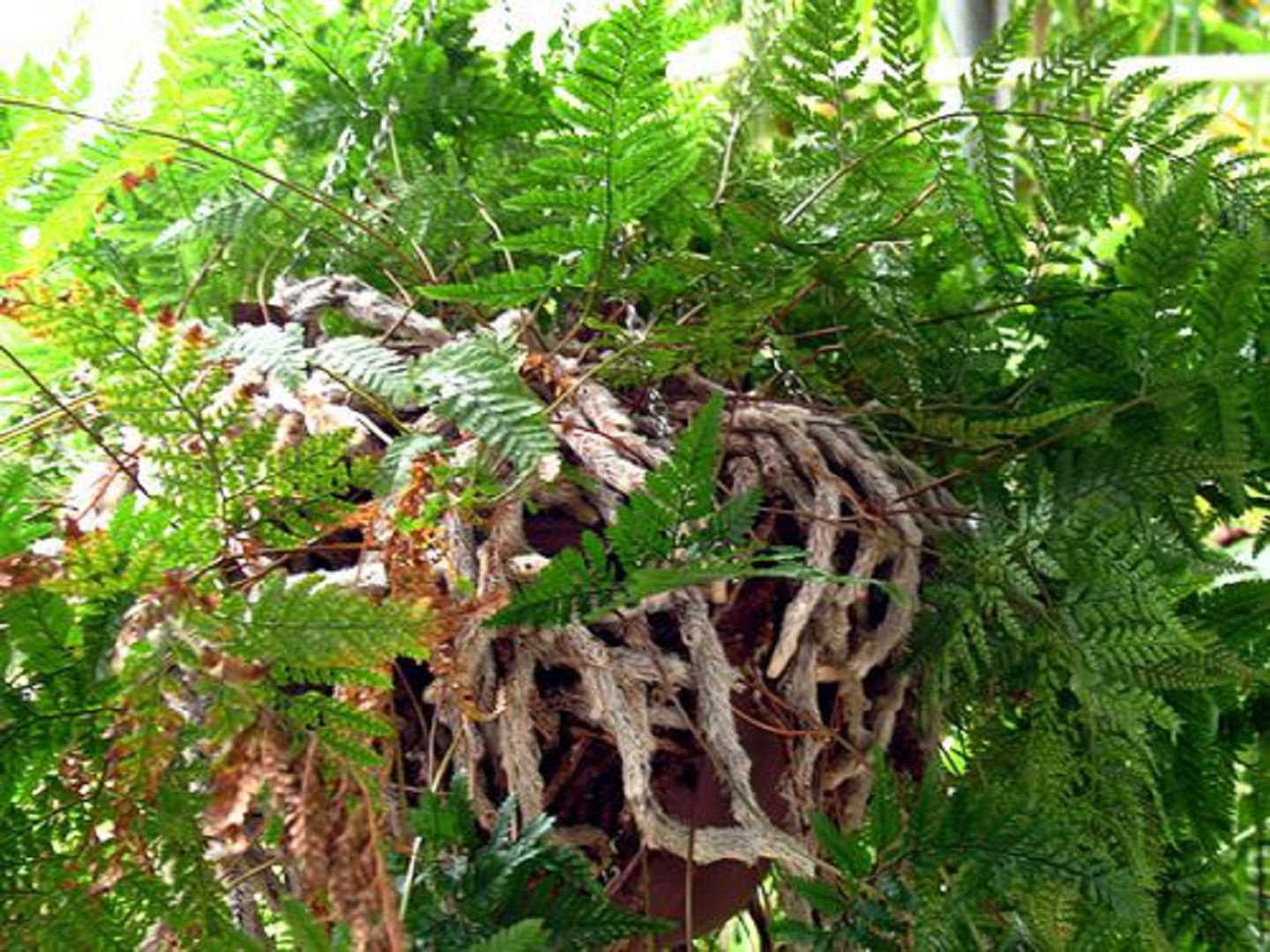 Земля для папоротников должна быть дерново-волокнистая, смешанная с торфяным порошком. Если нет земли, то можно использовать куски волокнистого торфа.