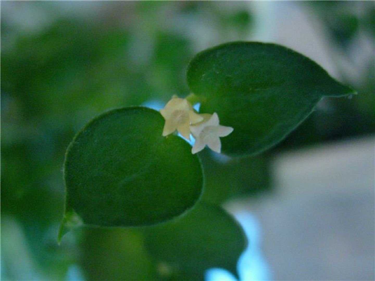 Описание: Дисхидия – лазящее эпифитное растение с двумя типами листьев: маленькими суккулентными, зеленого цвета и овальной формы и чуть больше, похожими на ракушки, зелеными с наружной части и красно-коричневыми внутри, а также с мелкими, на длинных черешках или сидячими, красноватыми листьями, которые образуются в пазухах листьев и зацветающие в любое время года.
