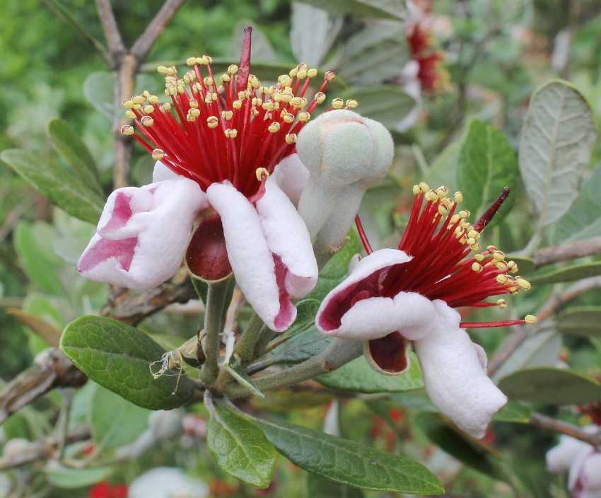 У фейхоа есть ещё несколько названий: Акка и ананасная трава. Помимо декоративного внешнего вида и вкусных, полезных плодов у растения есть ещё одно положительное качество — роскошное цветение, которое длится с мая по июль. Цветы фейхоа очень красивы и обладают тонким, ненавязчивым приятным ароматом.