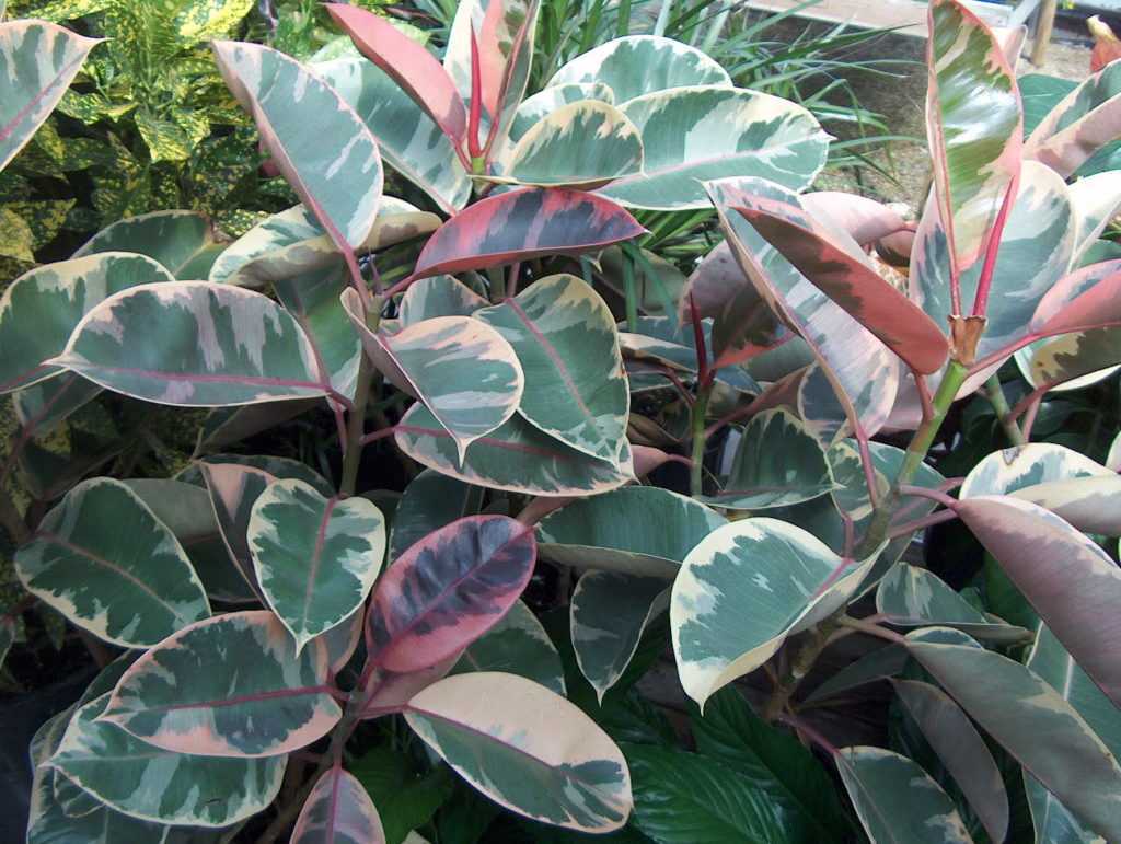 Пестролистные сорта можно сформировать в форме дерева или небольшого кустарника. Каучуконосный – лишь одна из разновидностей пестролистного фикуса.