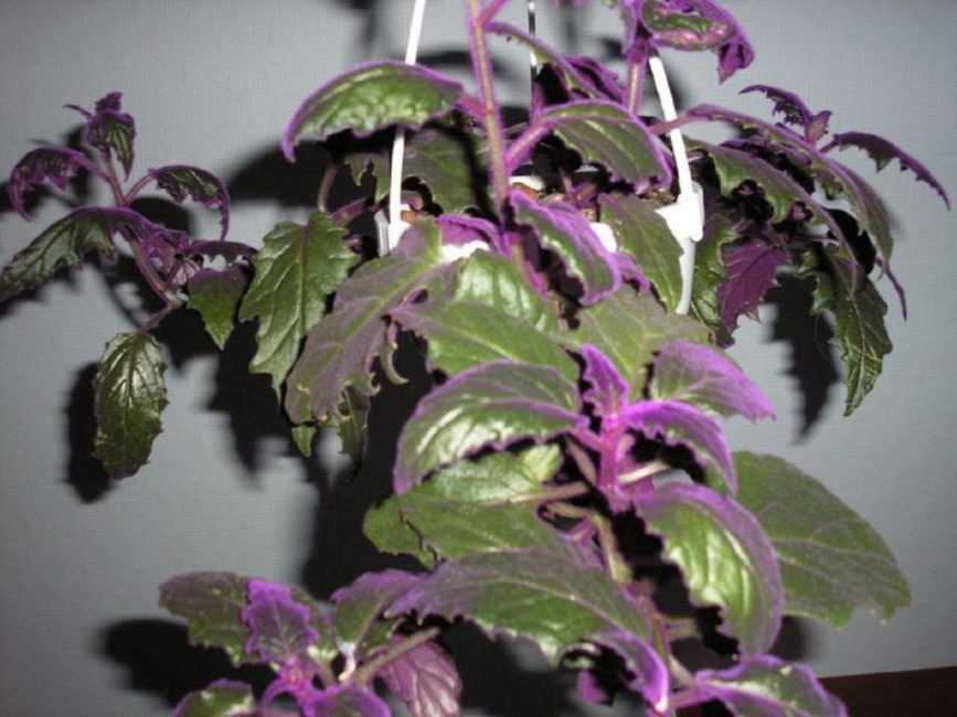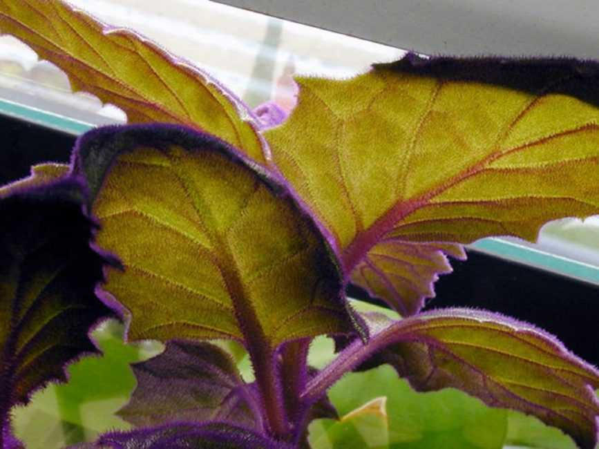 Гинура не может жить без яркого солнца или дополнительного освещения зимой. При нехватке света растение теряет свое фиолетовое очарование и ворсинки.