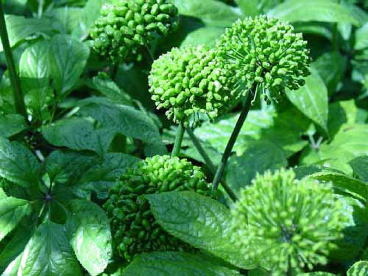 Ее еще называют псевдоженьшенем. Многолетнее лекарственное растение родом из Китая имеет длинные лазящие зеленые побеги. Цветы вырастают на длинных ножках в форме шаровидного зонтика зеленого цвета до 4,5 см в диаметре. На подоконнике вырастить ее не получится, так как семена купить довольно сложно, но, главное, условия в обычной квартире не пригодны для нее.