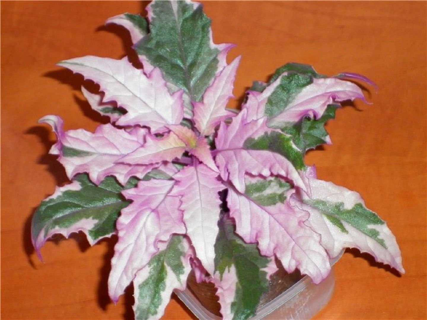 От всех прочих сортов этот отличается цветом листвы. Молодые листочки у кончиков побегов имеют нежный светло-розовый окрас, который по мере старения приобретает темно-зеленые пятнышки. Листья у корней становятся почти полностью темно-зелеными с розовой каймой.