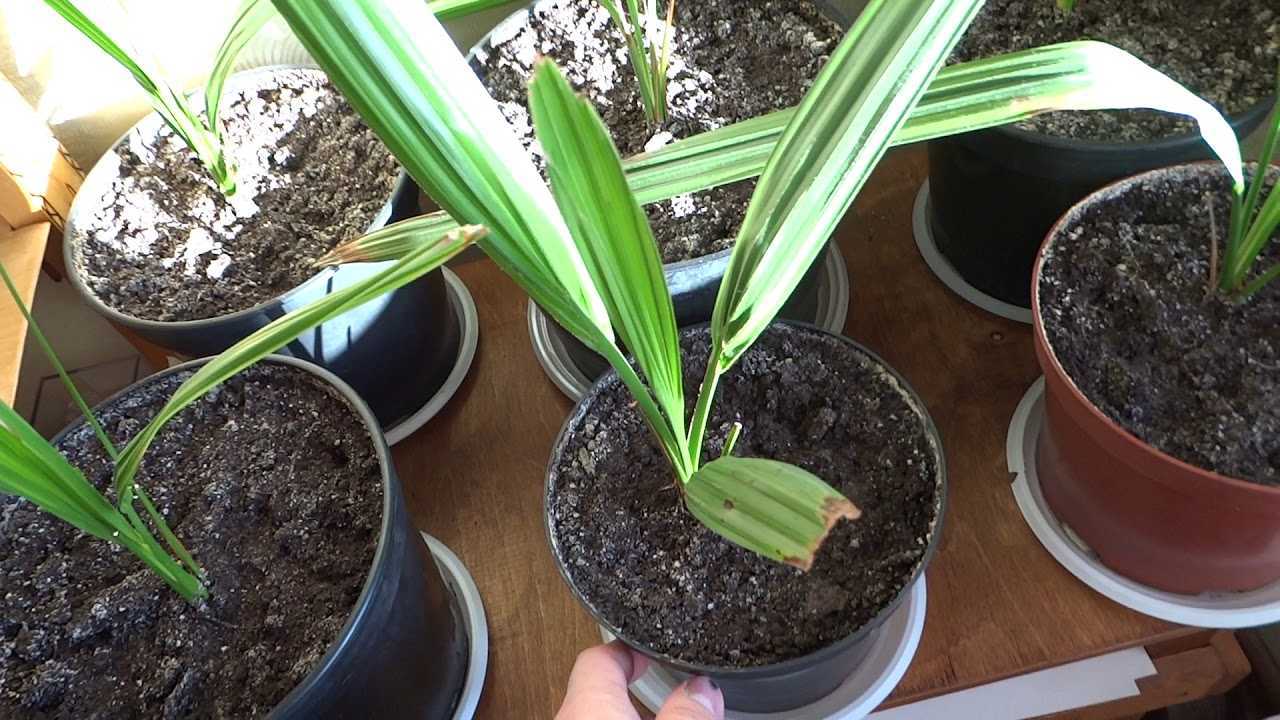 Не стоит волноваться, что первые листы, появляющиеся на всходах, не похожи на пальмовые. Сначала они линейные, украшенные немного видными полосками. После вырастания листья расщепляются и становятся веерообразным.