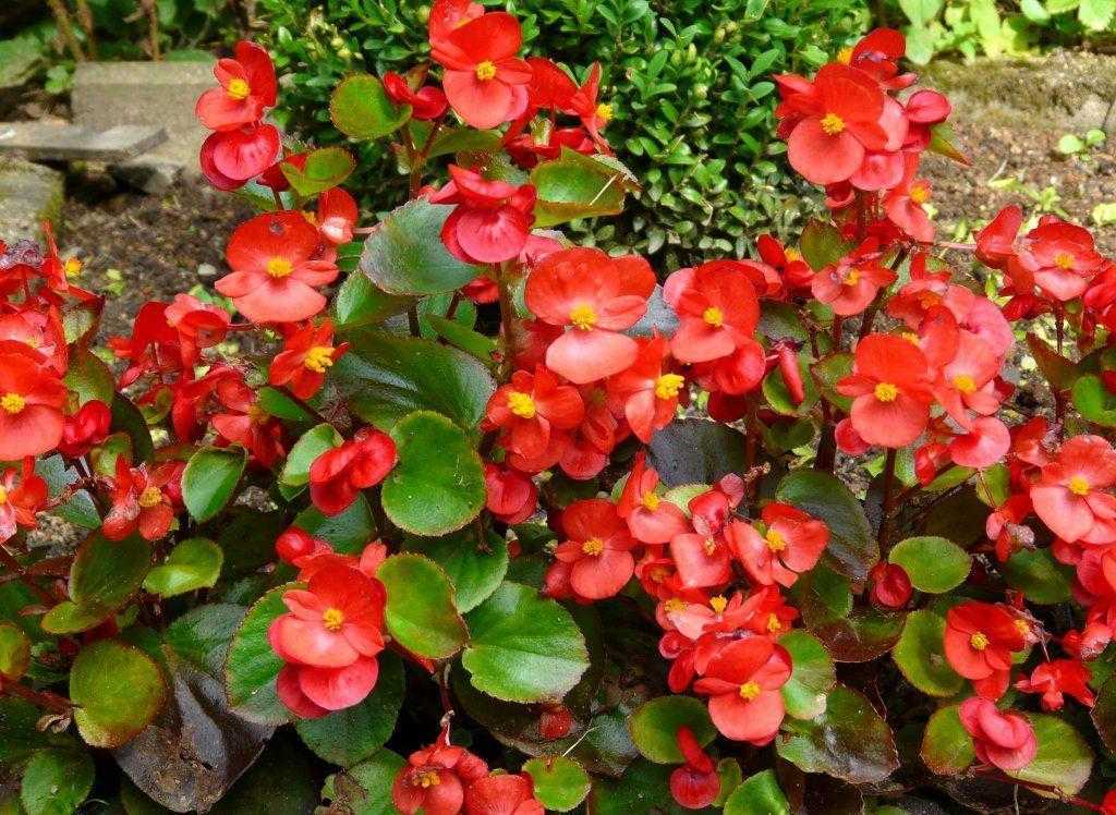 Корневая бегония вечно цветущая. Она цветет круглый год. На вашем подоконнике, при высадке в сад, при обратном ее переселении в домашние условия – цветение не прекращается. Этот вид относится к травянистым многолетним бегониям.