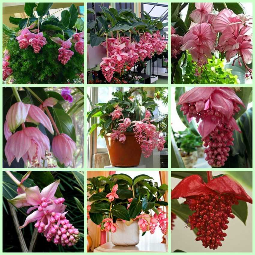 Мединилла великолепная признаётся цветоводами всего мира одним из самых красивоцветущих растений. Этот вид включает более десятка декоративных сортов – наиболее эффектные из них представлены на фото: