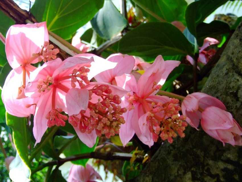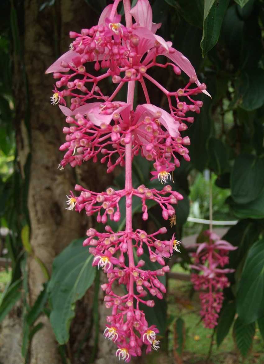 Мединилла великолепная получила своё название благодаря нежным ярко-розовым соцветиям