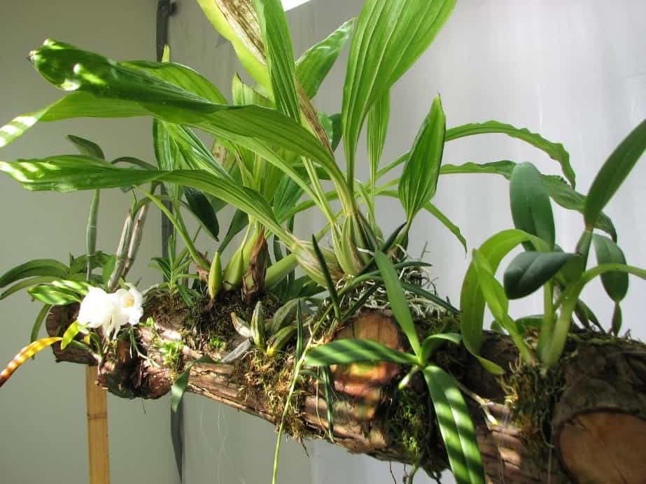 Орхидеи, у которых длинные корни, выращивают на блоках из коры сосны. Например, целогину бахромчатую. Проволокой на поверхности закрепляют корни, а сверху укладывается сфагнум. При таком выращивании применяются частые поливы.