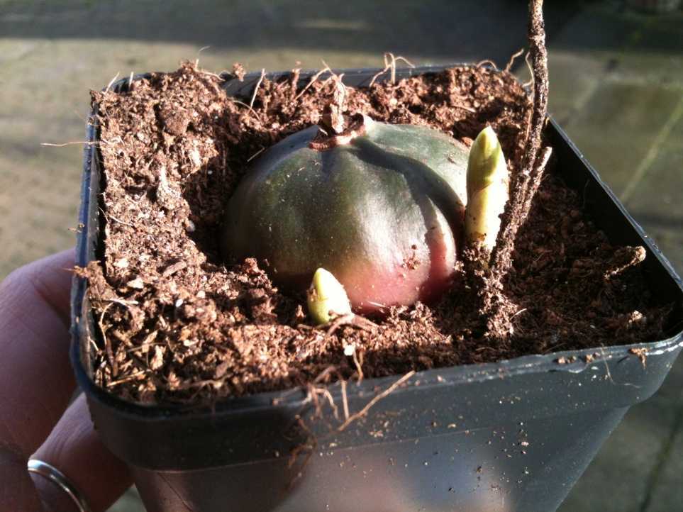 Ростки появляются в течение 2 — 4 недель, важно соблюдать высокую температуру для прорастания семян – 25 — 30° С. Сеянцы прикрывают прозрачным полиэтиленовым пакетом или стеклом для поддержания необходимого уровня влажности