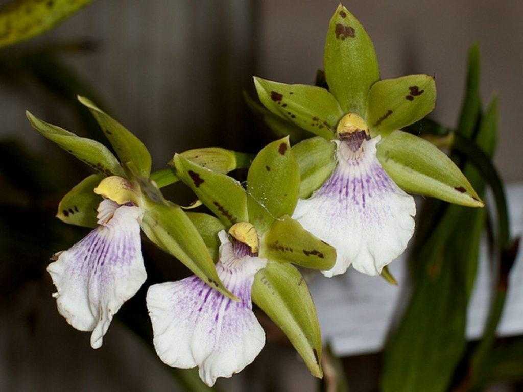 Также относящаяся к эпифитным видам растениям орхидея. Имеет цветки, окрашенные в зеленый цвет с коричневыми вкраплениями и увенчанный фиолетовым лепестком-губой.