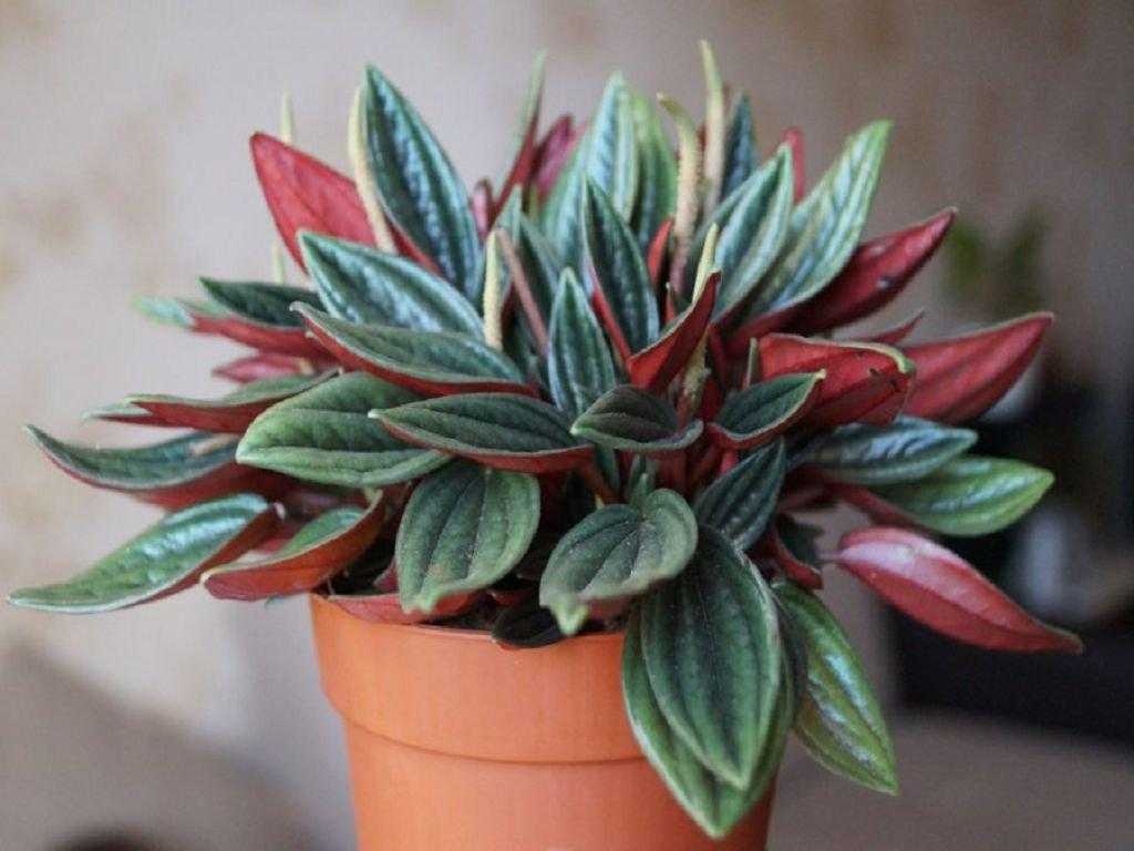 Пеперомия красноватая. Травянистый многолетник считается декоративным растением. Его красные тонкие побеги усыпаны маленькими листочками. Овальная листовая пластина сверху зеленого, а снизу – красного цвета.