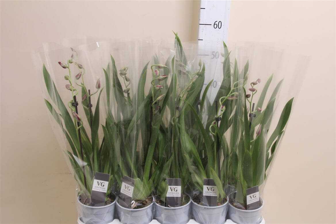 - из листовых пазух вытягиваются длинные цветоносы (иногда до 1 м), на конце которых, формируются эффектные бутоны (от 7 до 12 см). Оттенок лепестков и губы часто отличается, популярные цвета: фиолетовый, белый, розовый;