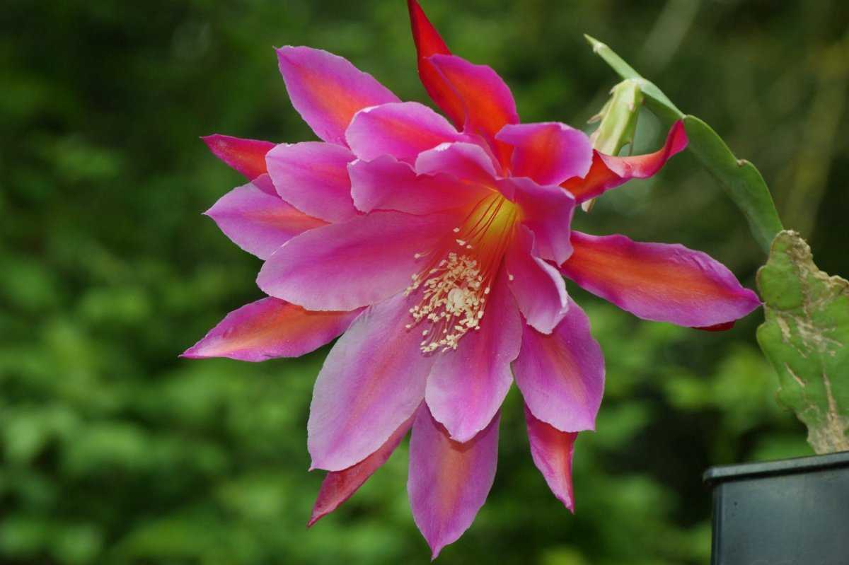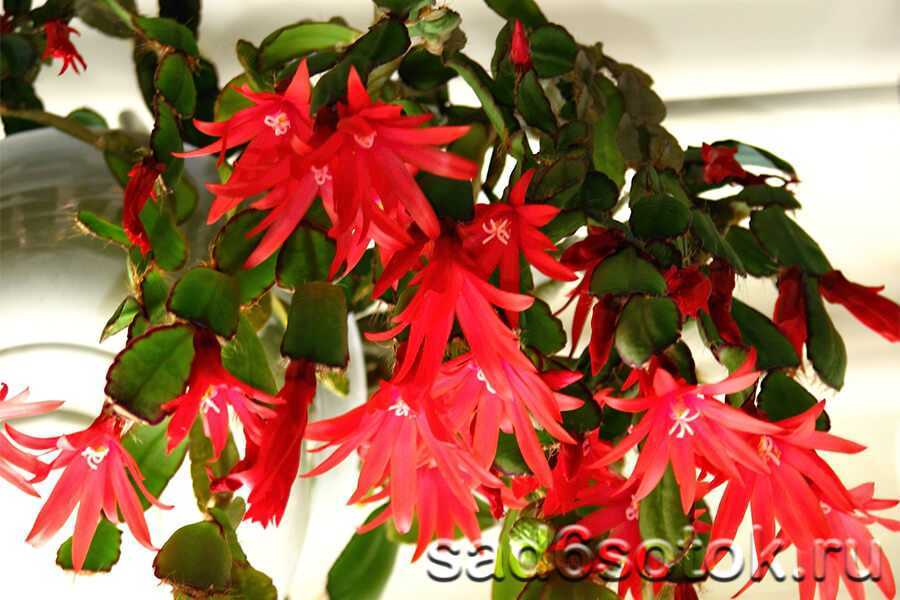 Внешне похож на шлюмбергеру, но имеет отличия в строении сегментов, форме цветка и времени цветения.