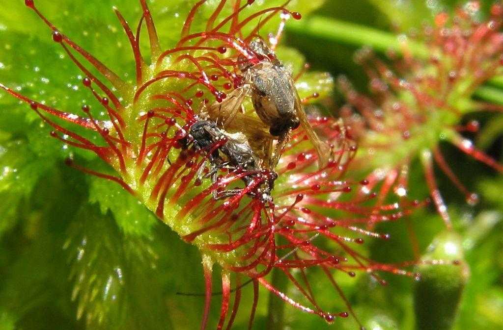 Растение опыляется насекомыми, что рискуют попасть в опасную ловушку росянки. Насекомые попадаются, в расположенные на кончиках ворсинок капельки.