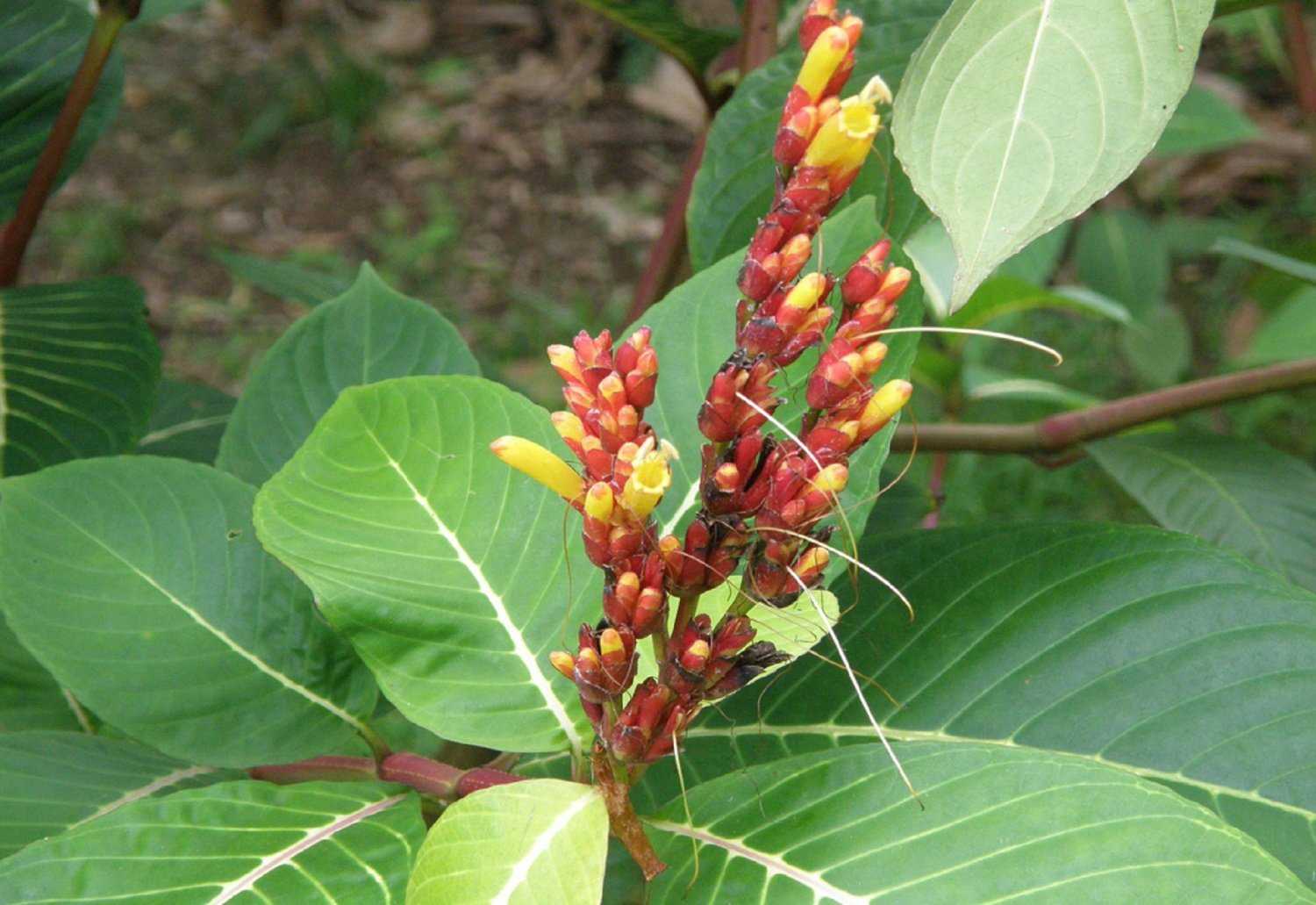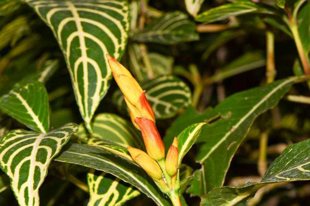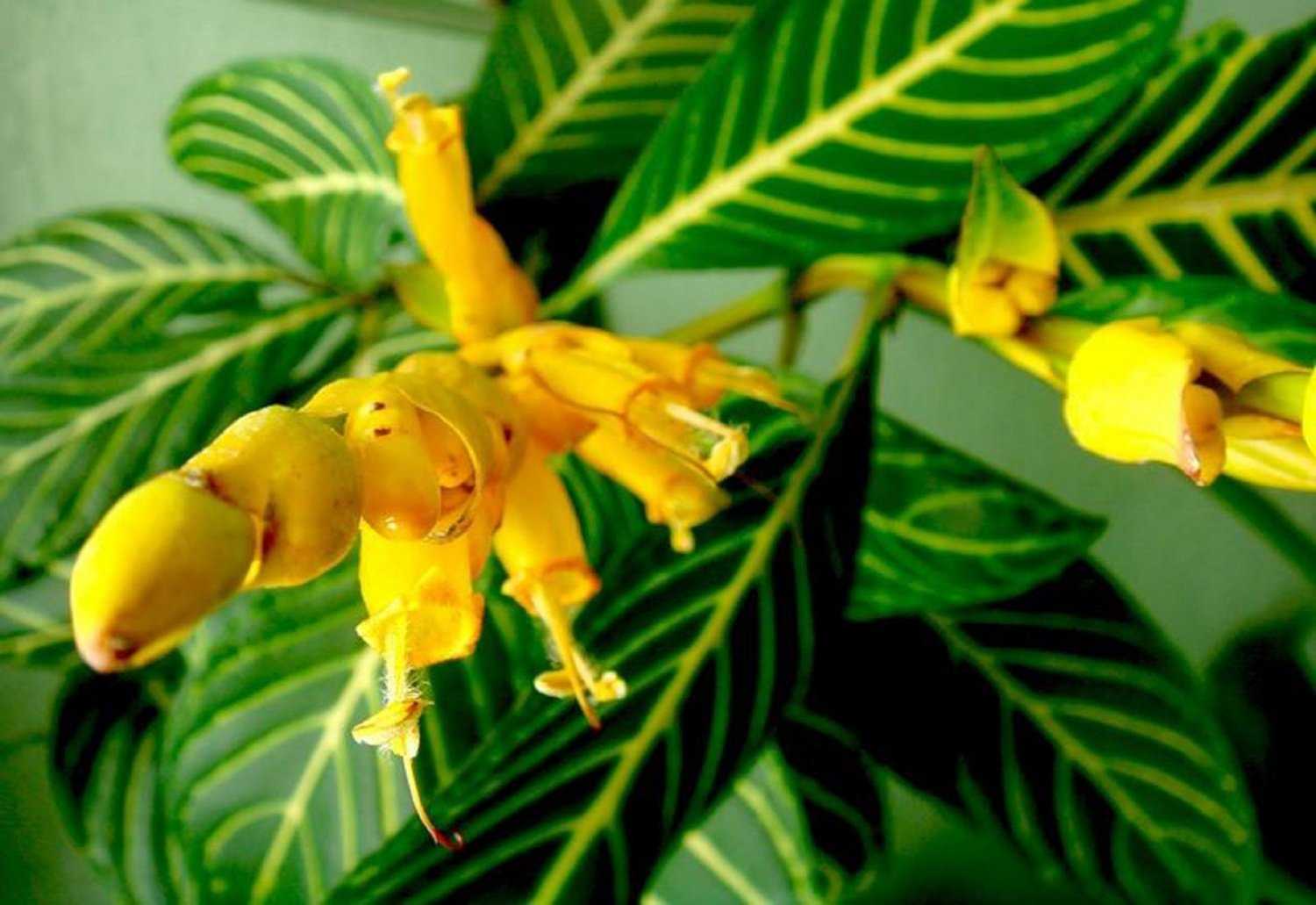 - Санхезия благородная (Sanchezia nobilis) является наиболее популярной разновидностью, которая выращивается в условиях комнат. Представлено это растение довольно крупным травянистым кустарником, обладающим стеблями четырехгранными в сечении. Высота его приближается к метровой отметке. Листовые пластины располагаются в супротивном порядке на побегах. Их длина варьируется в пределах 15–25 см при ширине около 8–12 см. Форма листвы эллиптическая, на верхушке имеется заострение, черешок у листа короткий. Поверхность окрашена в красивый насыщенно-изумрудный оттенок, прожилки выделены золотистым колером. При цветении соцветия принимают форму колоска, и располагаются на верхушках побегов. В соцветия собираются цветки с лепестками желтого тона, прицветники красные, венчик отличается срощенностью лепестков и из-за этого образуется удлиненная трубка в виде кувшинчика. Длина цветка составляет 5 см. Растение нередко именуют Санхецией прекрасной (Sanchezia speciosa). Родной ареал распространения принадлежит землям Эквадора, где этот экзот можно встретить во влажных лесах или на предгорьях. После опыления колибри из цветков завязываются плоды, которые принимают форму коробочки. И когда она полностью вызревает, то начинает раскрываться, освобождая множественные мелкие семена.