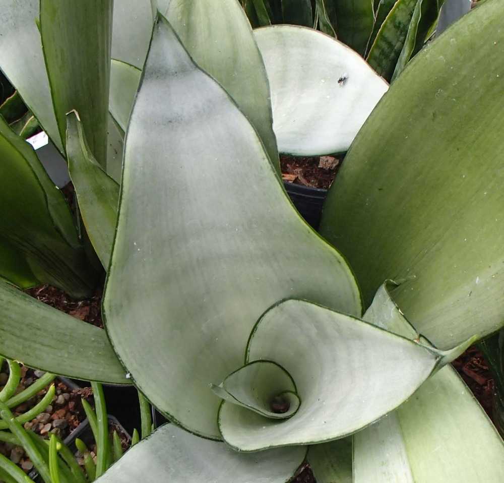 Этот вид также принадлежит к новым сортам и похож на Сансевиерия Футура по форме листьев. Но отличается серо-зеленым цветом листьев с серебристым оттенком.