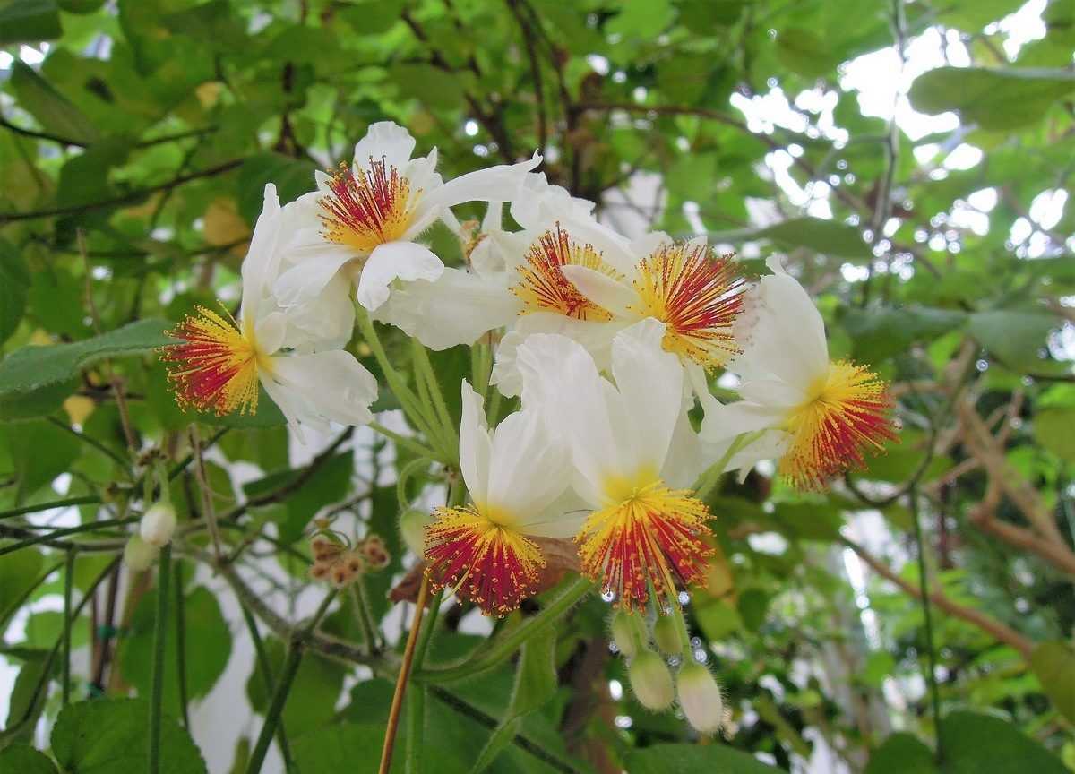 Лепестки цветов несколько загнуты назад, а структура – полупрозрачная. Внизу они имеют небольшие желтые пятна. У одного из сортов спармании, а именно у сорта «Flore Plena» они махровые.
