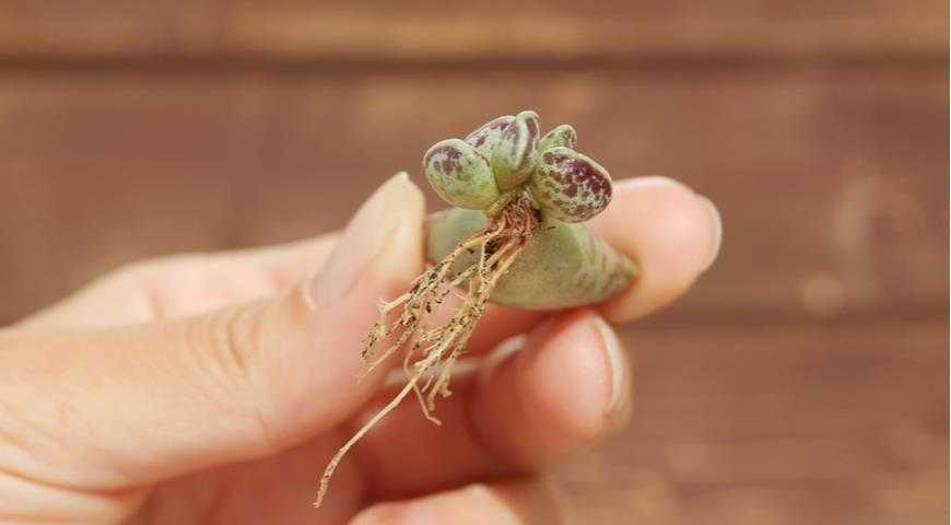 Жизнеспособность стебля сохраняется за счет связи с материнским растением. После образования корней отделяют стебель, и новый цветок пересаживают в полноценный горшок.