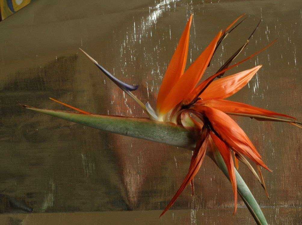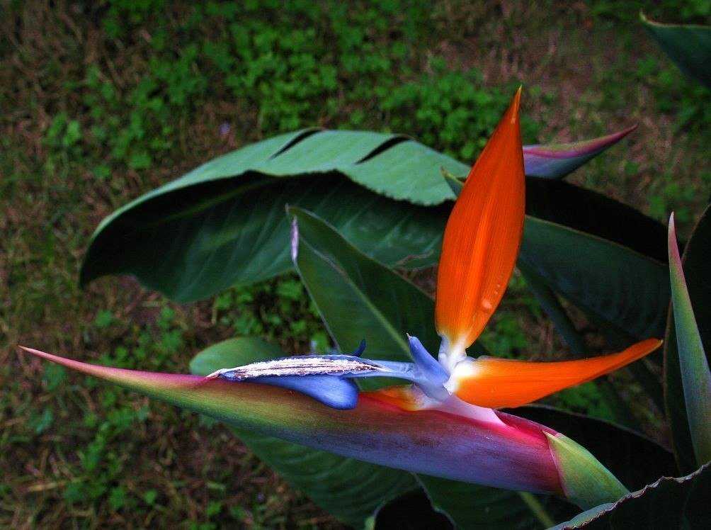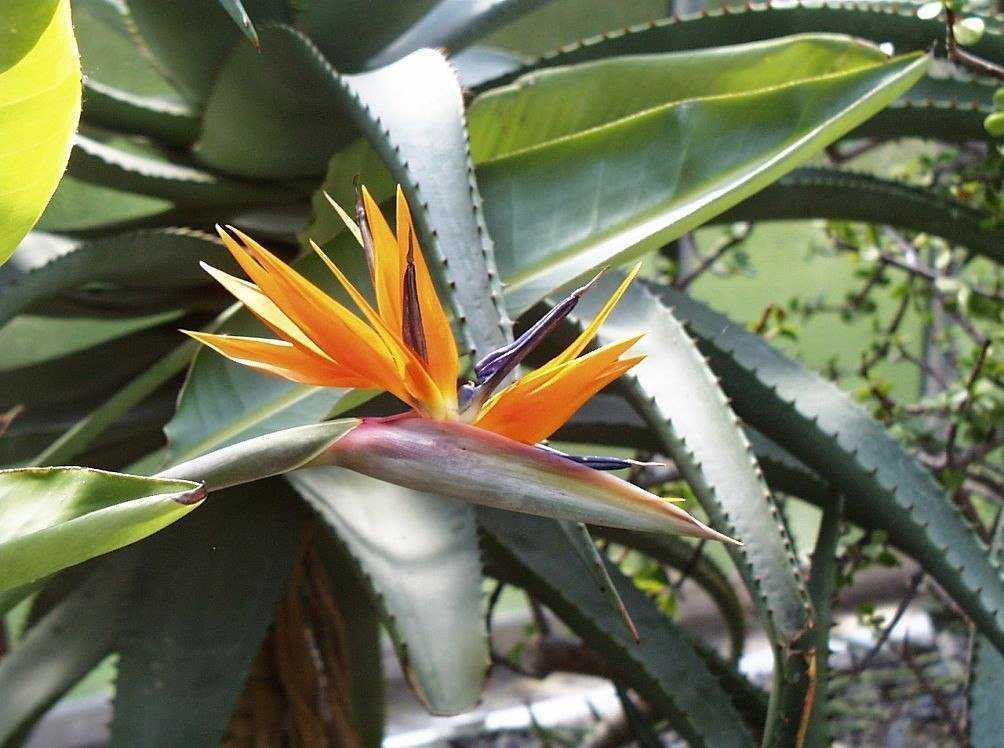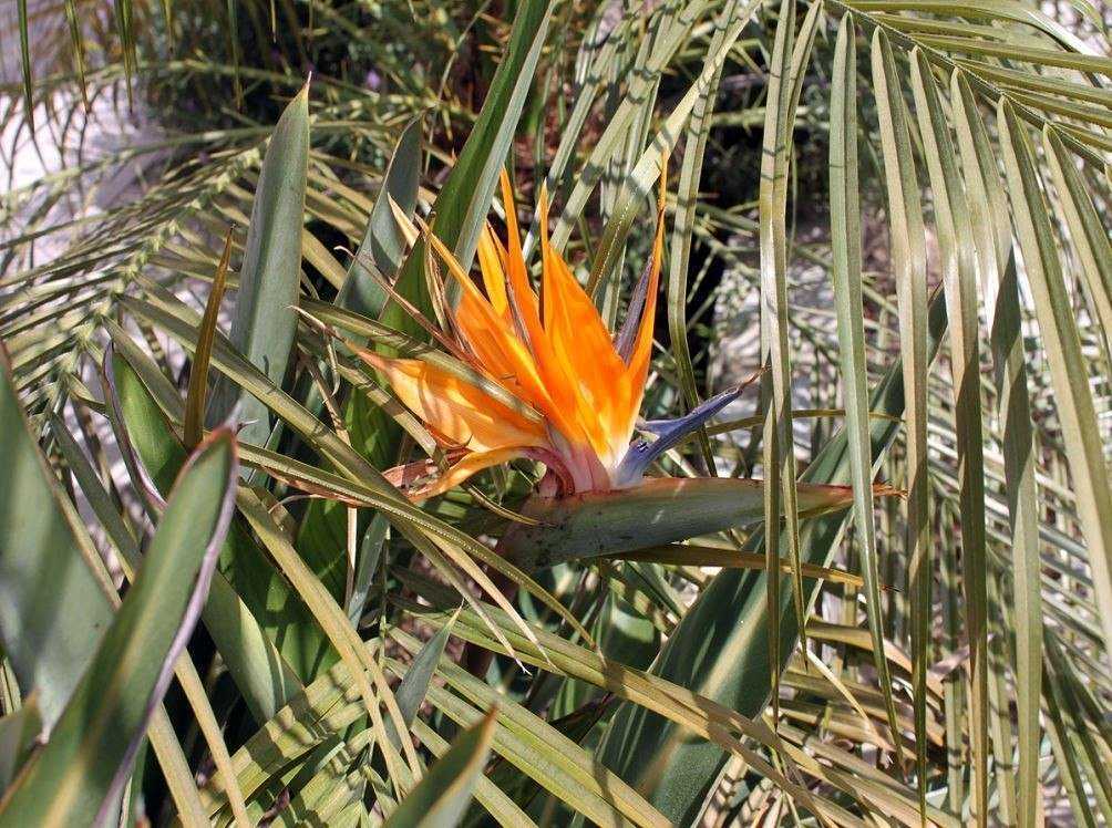 - Стрелиция королевская, у местного африканского народа прозвана журавлём. В высоту достигает двух метров, 2 раза в год весной и осенью выпускает цветоносы с оранжевыми и синими цветами. Размножается трудно, редкими боковыми отростками только от взрослых растений.