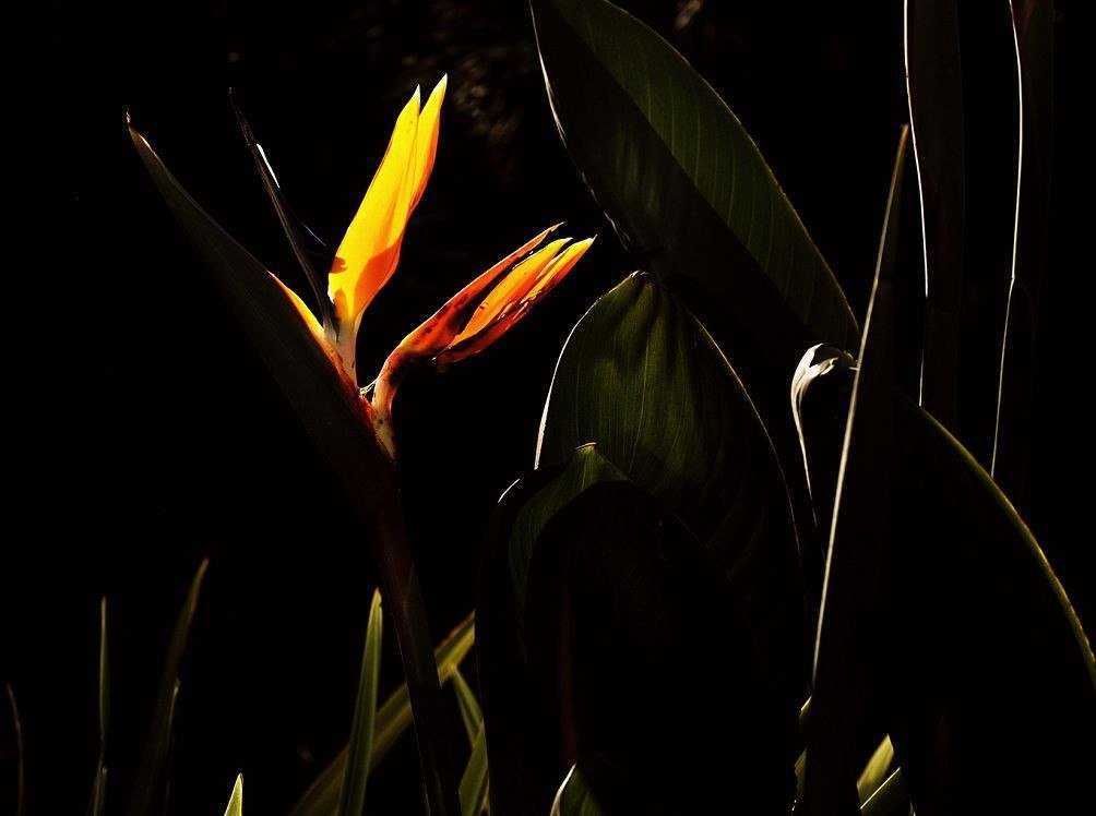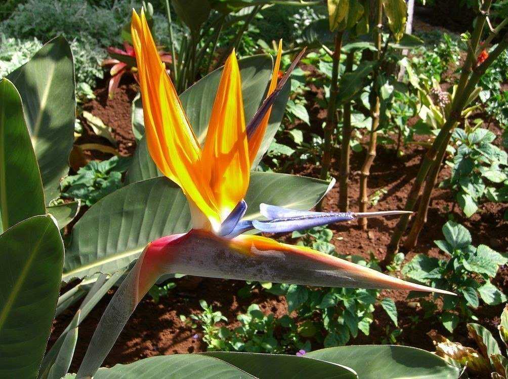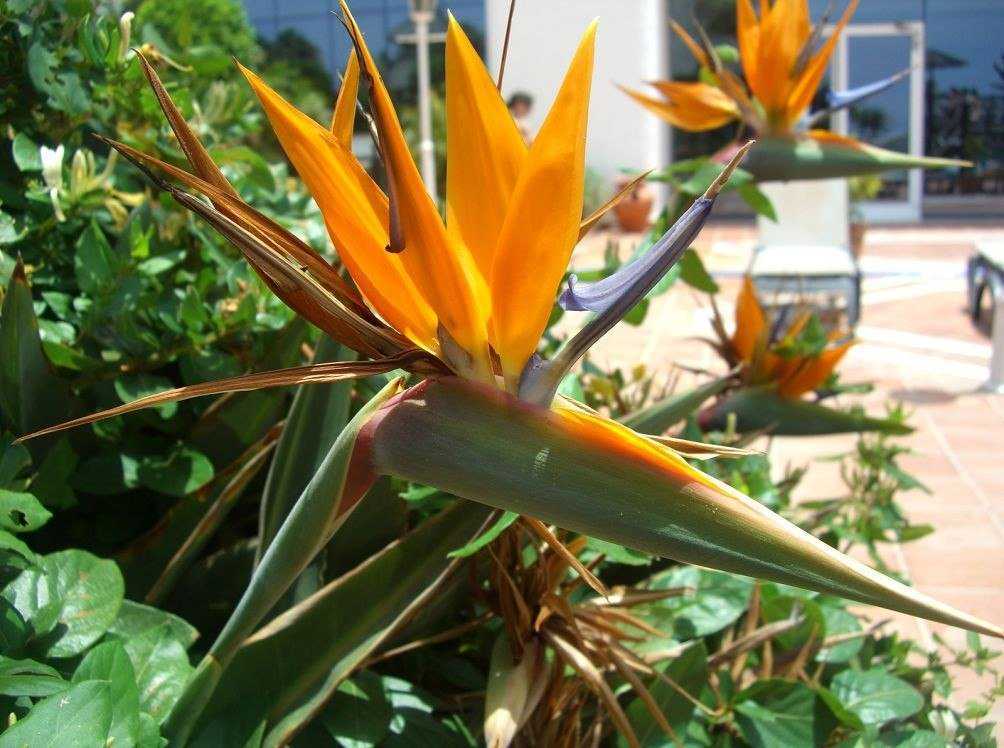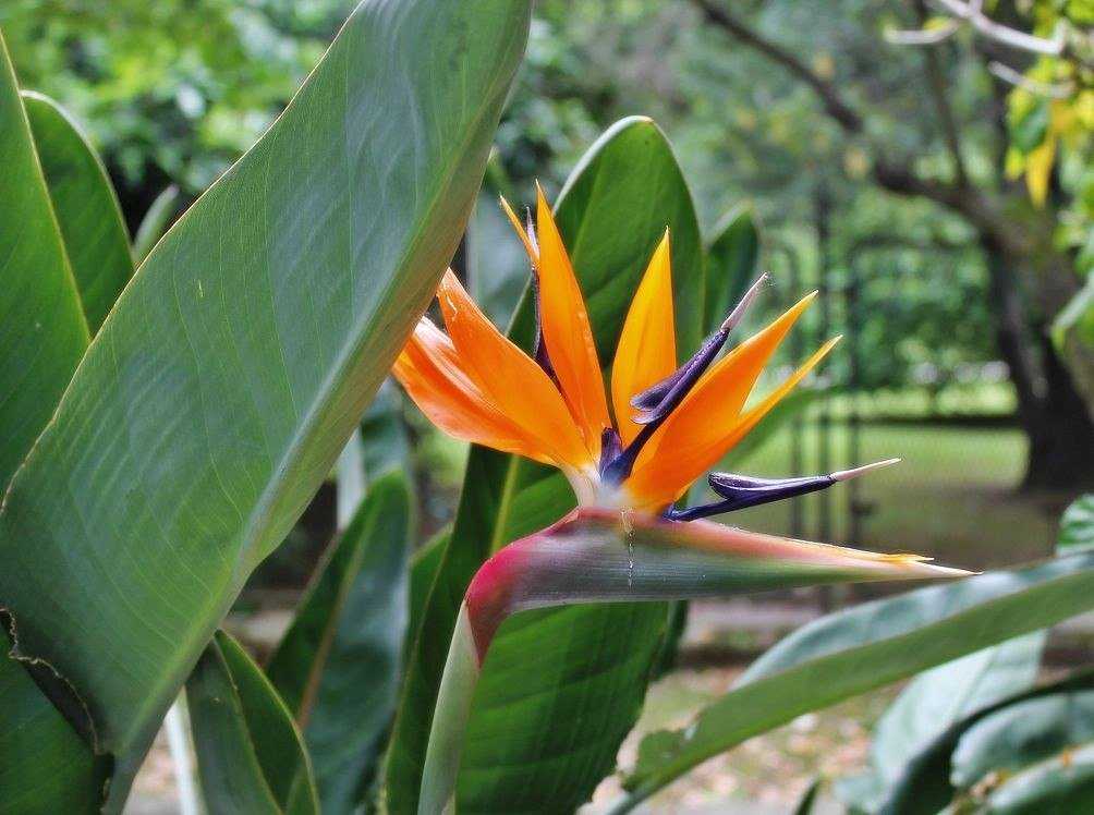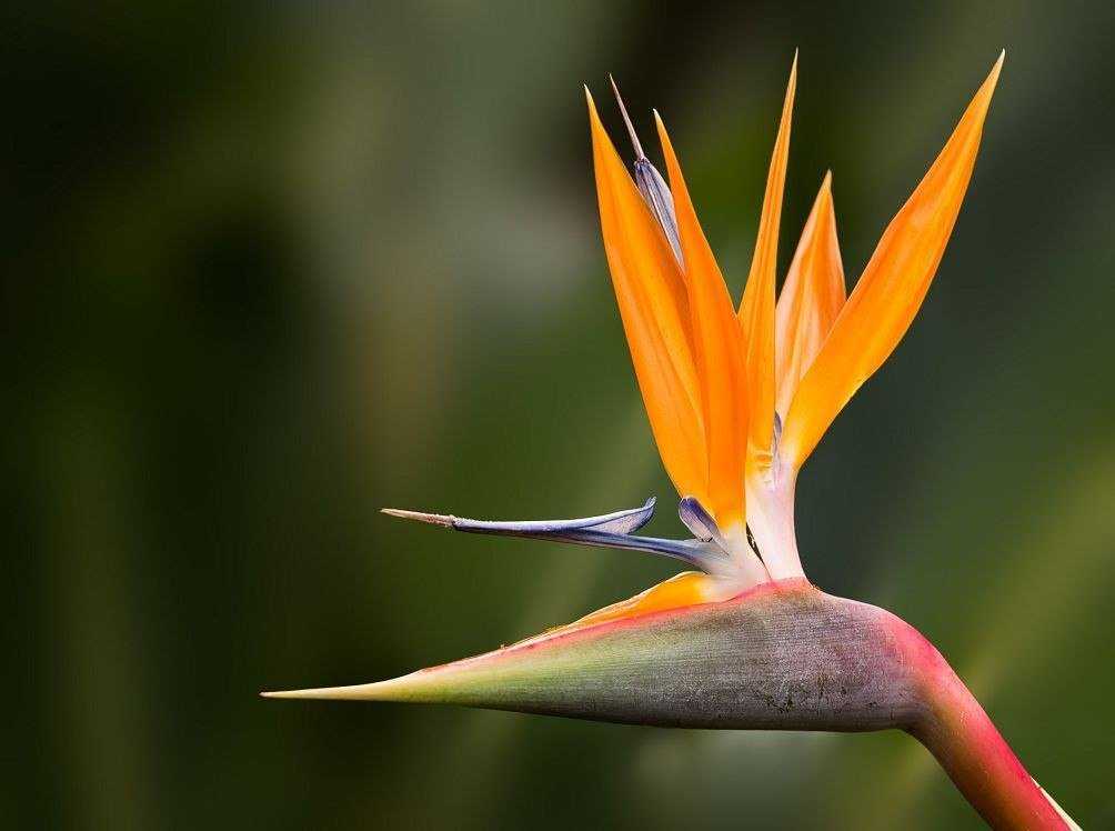 Цветок стрелиции напоминает голову райской птицы с хохолком