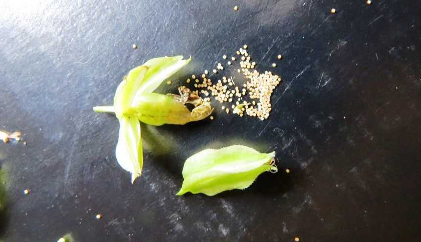 После увядания цветов на их месте появляются семенные коробочки. После некоторого времени они созревают, существенно меняя свой цвет с зеленого на темно-коричневый, а порой и черный. В такой коробочке находятся уже зрелые семена, которые можно беспрепятственно собрать, откалибровать, выбросив мелкие и подпорченные экземпляры, высушить и сложить в бумажный пакетик или небольшую коробочку.