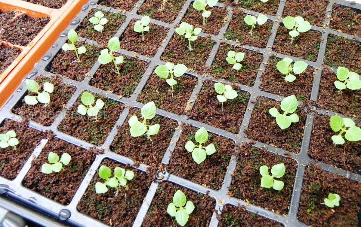 Ростки довольно быстро развиваются и обгоняют другие растения. Потому их нужно вовремя пикировать. Молодые ростки необходимо защищать от сухости грунта и переувлажнения. Поливать рассаду следует путем опрыскивания при высыхании земли.