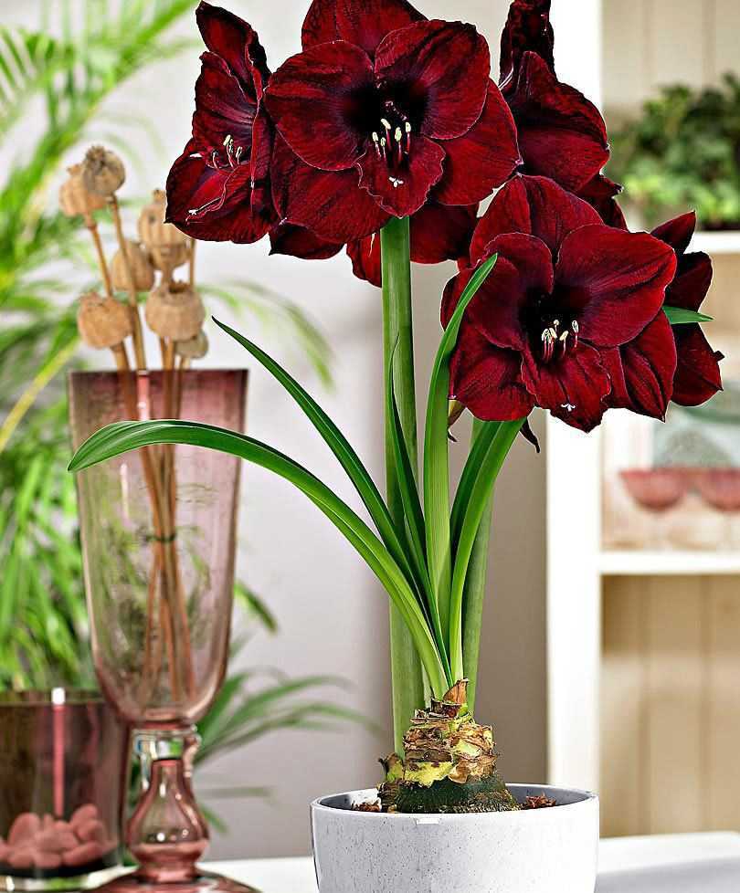 Красный лев. Является одним из самых популярных сортов амариллиса. На кожистых цветоносах во время цветения появляются насыщенно-красные бутоны среднего размера.