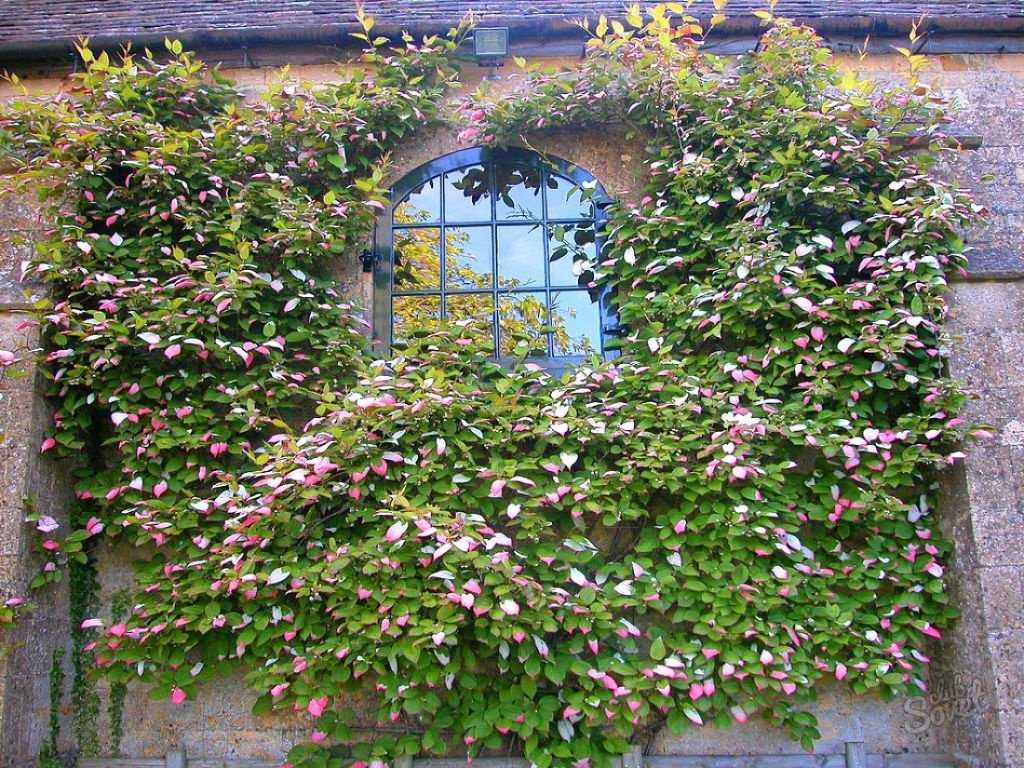 Актинидия коломикта. Устойчивая к морозам лиана вырастает в длину на 5-10 м. В основании толщина стебля составляет около 2 см. Яйцевидные пильчатые листочки длиной 7-16 см растут на красноватых черешках, а вдоль жилок покрыты рыжим ворсом. Мужские растения пестролистные. Летом при цветении кончик листа приобретает белесо-розовый цвет, а позднее становится ярко-малиновым. Поздней осенью листва окрашивается в желто-розовые или красно-фиолетовые тона. В июле распускаются душистые цветы, а в начале сентября созревают зеленые плоды длиной 20-25 мм. Сорта: