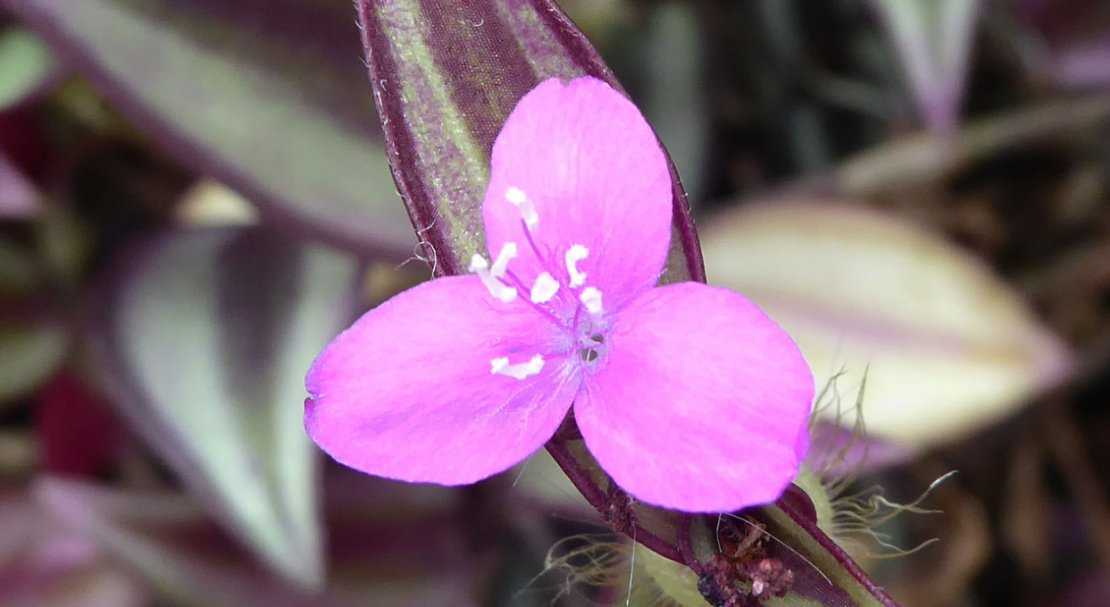 Цветение традесканции комнатной можно увидеть нечасто. Мелкие цветы, окрашенные в пурпурный, лиловый или розовый цвет, имеют всего три лепестка. Цветение начинается в начале лета: в пазухах листьев на вершине стебля появляются нежные цветы, которые смотрятся очень трогательно.