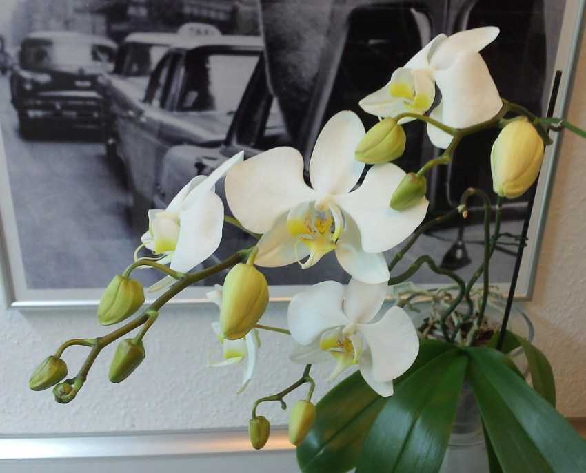 На кончике ее вырастают и распускаются новые бутоны, благодаря этому цветет круглый год при хорошем уходе.
