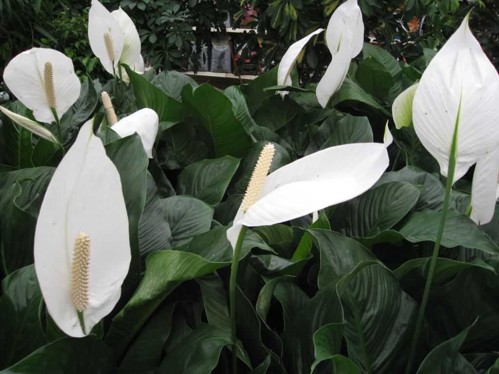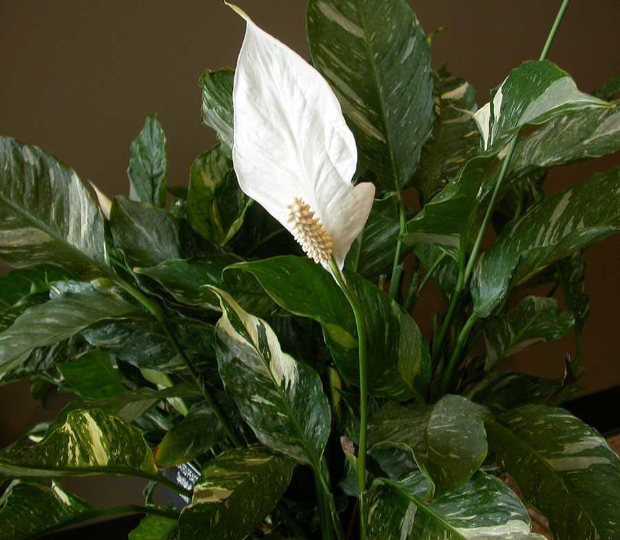 Спатифиллум Уоллиса (Spathiphyllum wallisii). Родина — влажные тропические леса Колумбии. Растение высотой от 20 до 30 см с коротким корневищем и розеткой темно-зеленых продолговато-ланцетных изящных листьев. Початок белый, покрывало узкое, втрое длиннее початка, сначала чисто-белое, затем зеленеющее. Цветение обильное и продолжительное. Растение неприхотливое и теневыносливое. Хорошо растет в комнатных условиях.