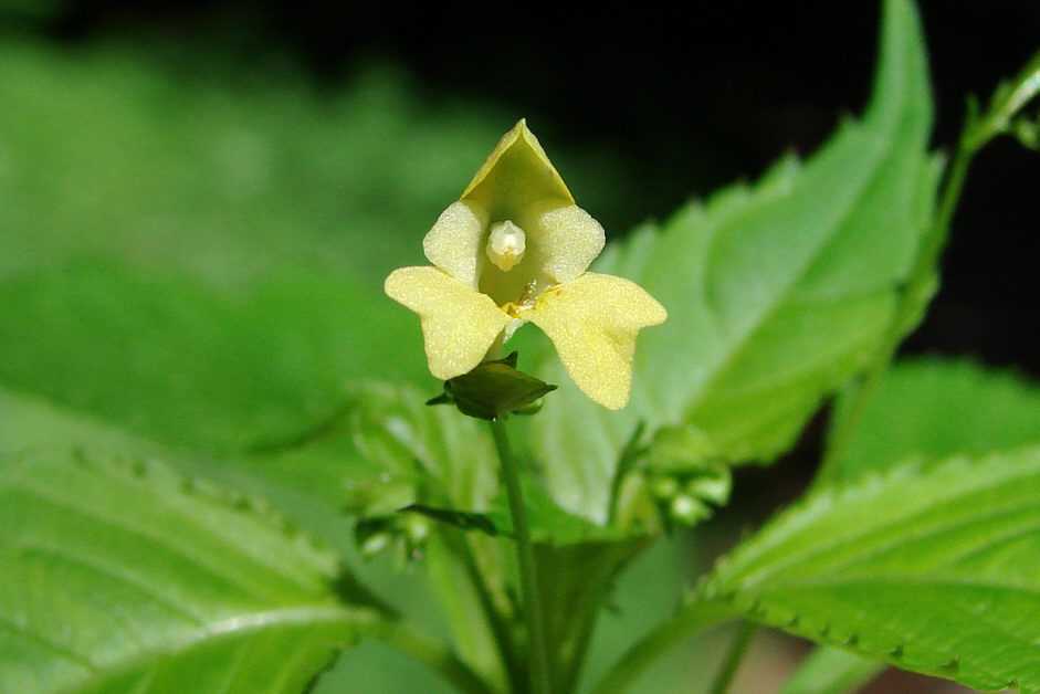 Разновидность Imраtiеns раrviflоra или «недотрога» – растение, отличающееся высотой надземной части не более 60 см, с ветвистым, прямостоячим, сочным и с утолщением в узлах стеблем, а также очередного расположения, короткочерешковыми, яйцевидной формы, с заострением, пильчатыми листьями. Цветки маленьких размеров, со светло-жёлтой чашечкой. Плоды представлены удлинённой коробочкой булавовидного типа.
