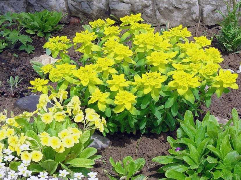 Для оформления участка можно использовать любой стойкий вид молочая, как одиночно, так и в составе групповой композиции. Невысокие суккуленты отлично подходят для обрамления садовых цветов – колокольчиков, тюльпанов, ирисов.